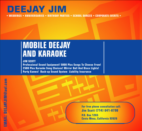 DJ ORANGE COUNTY, DJ, DJs, Disc Jockey, Disk Jockeys, professional, disc, jockey, Orange County, music, wedding, reception, ceremony, party, school, disco wiz, disco, wiz, Dee Jay Jim, karaoke, Costa Mesa, Newport Beach, Huntington Beach, Irvine. DJ Orange County.